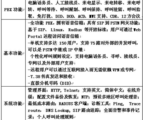 中小企業(yè)語音通信系統(tǒng)的功能及參數(shù)一覽表