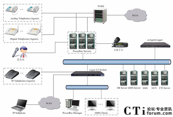 圖2-2 典型混合型錄音組網(wǎng)拓?fù)鋱D