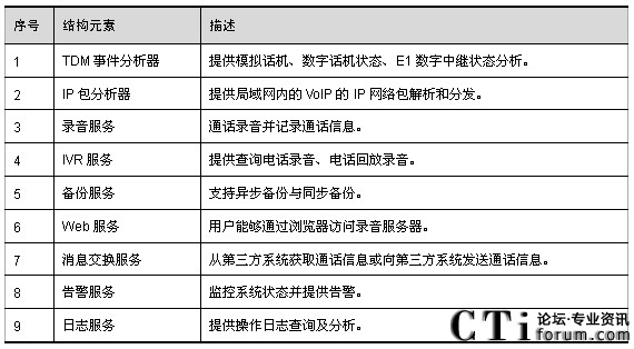 數(shù)字錄音系統(tǒng)通過模擬用戶線或者Lanside E1與交換機相連。當(dāng)錄音對象摘機通話時,交換機將數(shù)字錄音系統(tǒng)和被錄音通話雙方建立會議,并通過CTI向數(shù)字錄音系統(tǒng)發(fā)出錄音啟動命令;當(dāng)錄音對象結(jié)束通話時,交換機將數(shù)字錄音系統(tǒng)和被錄音通話雙方拆除會議,并通過CTI向數(shù)字錄音系統(tǒng)發(fā)出錄音結(jié)束命令。