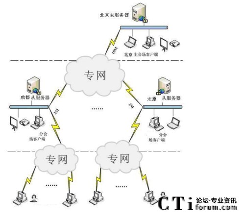 根據(jù)北京正大通力鋼管銷售有限公司對本系統(tǒng)的建設需要,CNKaran采用DX4000統(tǒng)辦公系統(tǒng)建設本期工程。傳輸網(wǎng)絡采用10M專線。整個系統(tǒng)由控制中心、北京正大通力鋼管銷售有限公司主會場和7個省市分會場組成,在控制中心配置服務器、投影儀和高清電視機,實現(xiàn)視頻多輸出源的顯示。通過網(wǎng)絡管理部門對系統(tǒng)實行設備的統(tǒng)一管理和會議資源的統(tǒng)一調(diào)度,會議中心配置切換視頻輸出單元,通過投影儀、液晶電視實時監(jiān)看7個省市分會場情況,北京正大通力鋼管銷售有限公司和7個省市分會場同時訪問控制中心的服務器,各分會場配置一套音視頻的輸入/輸出設備,7個省市分會場分別采用1M、2