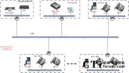 通過網(wǎng)絡(luò)還可以將系統(tǒng)與現(xiàn)有高清視頻會議系統(tǒng)進(jìn)行連接,在VVX1500話機(jī)之間實(shí)現(xiàn)單點(diǎn)視頻通信的基礎(chǔ)上,實(shí)現(xiàn)VVX1500的多點(diǎn)通訊以及和視頻會議終端之間的點(diǎn)對點(diǎn)視頻通信。同時,領(lǐng)導(dǎo)也可以通過MCU加入到視頻會議中實(shí)現(xiàn)多方視頻會議,這樣就可以實(shí)現(xiàn)領(lǐng)導(dǎo)在辦公室參加視頻會議,而不用每次去會議室開會。