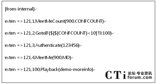 3.下面我們需要在meetme.conf這個(gè)文件中添加會議房間號
