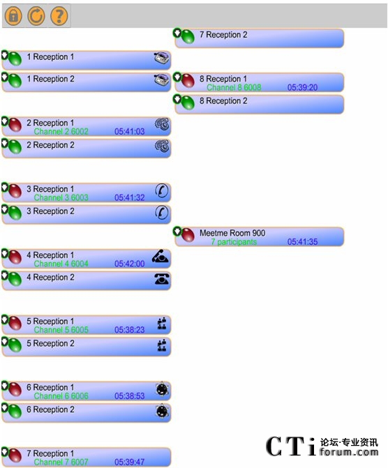 分別撥通八部電話到電話會議,這里撥打121,然后系統(tǒng)提示密碼,這里輸入123456,最后系統(tǒng)提示輸入會議房間號,這里是900。成功撥入后,如果你是第一個(gè)進(jìn)入會議的人,系統(tǒng)會提示你是第一個(gè)人,然后播放音樂,直到下一位人到來,音樂停止。接下來的人成功撥入會議后,會聽到一小段系統(tǒng)音樂,然后聽到會議。