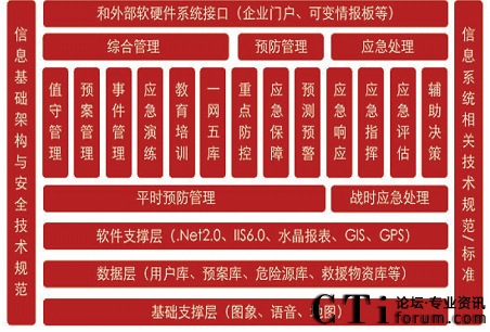 突發(fā)公共事件應(yīng)急管理系統(tǒng)包括電話自動(dòng)接處呼叫系統(tǒng)、指揮調(diào)度系統(tǒng),數(shù)字錄音系統(tǒng),地理信息系統(tǒng)、預(yù)測預(yù)警系統(tǒng),決策支持系統(tǒng)等。