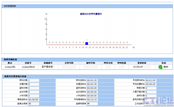 客戶撥打企業(yè)對外聯(lián)系號碼4007072008,在聽到語音提示“歡迎致電。。。。。。,技術(shù)支持按3。。。。。。”的時候,既可以按3,將電話分配到項目部的最適合這個工作的人的手機(jī)上來完成項目支持工作,也可以直接撥8123將電話指定分配到小河的手機(jī)上,讓工程師小河來完成項目支持工作。這樣一來,不管公司的人員在哪里,客戶只要撥打公司的總機(jī)號碼,就可以找到人員為其提供服務(wù),同時,所有的通話,都在系統(tǒng)的管理和控制之內(nèi)。下圖是對應(yīng)的呼叫監(jiān)控的圖表,可以實時看到員工的工作狀態(tài):