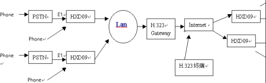 HXD09能滿足各種網(wǎng)絡(luò)條件下的應(yīng)用。組網(wǎng)拓撲圖如下: