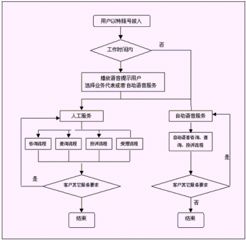 客戶也可以選擇自動語音服務(wù)方式,根據(jù)系統(tǒng)的語音提示輸入按鍵,選擇類別,將自己所需要的服務(wù)要求以及自己的聯(lián)系方式信息以留言錄音的方式保存在系統(tǒng)中。系統(tǒng)同時還支持自動傳真方式,客戶可以通過傳真機(jī)進(jìn)入本系統(tǒng),通過按鍵選擇傳真方式,將所需要的服務(wù)要求等的文本內(nèi)容傳真給系統(tǒng),系統(tǒng)自動接受并存入數(shù)據(jù)庫。