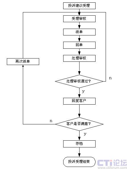 話務(wù)員確認(rèn)投訴和建議后由復(fù)審員再次確認(rèn)分析,然后把用戶的各種意見和合理化建議轉(zhuǎn)相關(guān)部門處理,對呼叫中心本身的投訴則轉(zhuǎn)班長席處理。投訴受理系統(tǒng)可以設(shè)置處理部門和處理時(shí)限,完成告警輸出和各種統(tǒng)計(jì)分析工作,投訴和建議的處理結(jié)果可以根據(jù)需要采用人工、自動、傳真、短信的形式反饋到用戶以提高用戶對服務(wù)的滿意度。