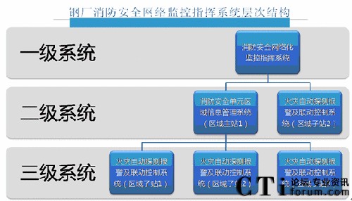 二級系統為“消防安全單元區(qū)域信息管理系統(區(qū)域主站)”,設在消防控制中心,是分廠級的消防安全信息管理中心,是一級和三級系統之間信息上傳下達的匯接點,其功能為:①及時上傳安全單元區(qū)域的火災信息給消防安全監(jiān)控指揮中心;②對本單元區(qū)域的一級系統進行實時監(jiān)控和管理;③與分廠級生產信息管理中心進行信息交互和應急聯動;④與其它消防安全單元區(qū)域信息管理系統進行對等通訊聯絡。
