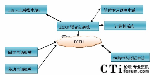 火警電話匯接至調度程控交換機,將火警電話通過CTI服務器提取主叫號碼并傳送到火警受理工作站。
