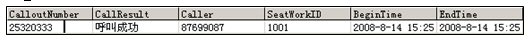 | 工號(hào) | 登陸時(shí)間 | 退出時(shí)間 | 呼入次數(shù) | 接通次數(shù) | 平均振鈴時(shí)長(zhǎng) | 平均通話時(shí)長(zhǎng) | 登陸總時(shí)長(zhǎng) | 振鈴總時(shí)長(zhǎng) | 準(zhǔn)備總時(shí)長(zhǎng) | 通話總時(shí)長(zhǎng) | 其它工作時(shí)長(zhǎng) | 事后整理時(shí)長(zhǎng) | 分機(jī)號(hào)碼 |