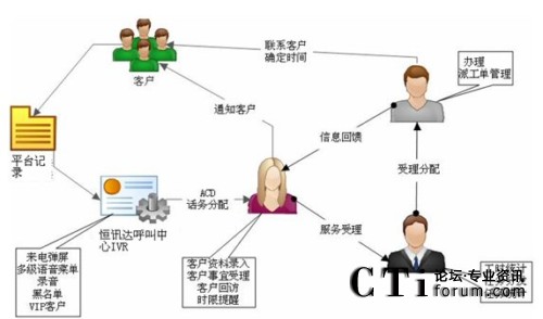 呼叫中心的建設(shè),并不單純是一個電話交互的窗口,應該能提供功能完善的全面服務內(nèi)容,呼叫中心系統(tǒng)流程: