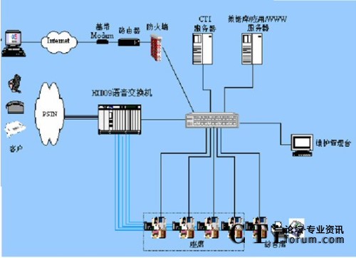 坐席:座席話機(jī)采用數(shù)字話機(jī),帶有耳機(jī),并配有錄音端口;座席電腦采用PC微機(jī)運行坐席軟件和人工坐席業(yè)務(wù)系統(tǒng)。