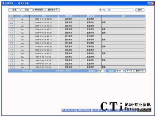 頁面的跳轉(zhuǎn):如果總的紀(jì)錄條數(shù)比當(dāng)前設(shè)置的每頁顯示的記錄個(gè)數(shù)多的話,其他紀(jì)錄將在另一頁中顯示,如果要查看當(dāng)前頁之外的其他數(shù)據(jù),如果此頁之前還有數(shù)據(jù),可以點(diǎn)擊“上一頁”查看此頁前的一頁;如果此頁后還有數(shù)據(jù),則點(diǎn)擊“下一頁”查看此頁后的一頁;如果當(dāng)前不是在第一頁,則可以點(diǎn)擊“第一頁”查看第一頁的數(shù)據(jù);如果當(dāng)前不是最后一頁,則可以點(diǎn)擊“最后一頁”查看最后一頁的數(shù)據(jù)。