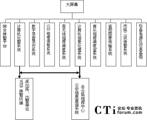 本次建設(shè)需要采用綜合通信技術(shù),將110、119、122系統(tǒng)的計(jì)算機(jī)網(wǎng)絡(luò)和有、無(wú)線通信網(wǎng)有機(jī)互聯(lián),建成集接處警信息獲取、統(tǒng)計(jì)、查詢、發(fā)布于一體,并通過地理信息和多媒體大屏幕顯示等輔助系統(tǒng)的綜合指揮調(diào)度,實(shí)現(xiàn)110、119、122快速反應(yīng)、信息共享的目的。為此,各系統(tǒng)應(yīng)分別具有下述功能: