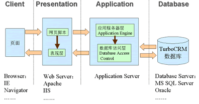 為了滿足移動(dòng)辦公和分布式管理的需求,CRM系統(tǒng)將更多采用基于Browser-Server架構(gòu)的多層結(jié)構(gòu)。B/S結(jié)構(gòu)的特點(diǎn)是在客戶端使用標(biāo)準(zhǔn)的Web頁(yè)面瀏覽器(如Internet Explorer等),不需安裝特殊的應(yīng)用程序,減少了升級(jí)和維護(hù)的難度;所有的業(yè)務(wù)數(shù)據(jù)都保存在Server端,確保了數(shù)據(jù)的安全;在通訊方面,由于使用標(biāo)準(zhǔn)的HTTP協(xié)議,使得系統(tǒng)可以輕松的實(shí)現(xiàn)移動(dòng)辦公和分布式管理。另外為了系統(tǒng)功能的可擴(kuò)展性,應(yīng)該采用將數(shù)據(jù)庫(kù)、應(yīng)用層及表現(xiàn)層分離的多層結(jié)構(gòu)。獨(dú)立的數(shù)據(jù)庫(kù)層便于支持多種數(shù)據(jù)庫(kù)系統(tǒng),將實(shí)現(xiàn)企業(yè)邏輯的應(yīng)用層獨(dú)立使業(yè)務(wù)邏輯的更新和擴(kuò)展更為方便,而當(dāng)需要支持手機(jī)、PDA等新的客戶端設(shè)備時(shí)只要對(duì)表現(xiàn)層進(jìn)行擴(kuò)充就可以實(shí)現(xiàn)。同時(shí),這種多層結(jié)構(gòu)也可以采用負(fù)載均衡與集群等技術(shù)實(shí)現(xiàn)系統(tǒng)的高可用性和性能的平滑擴(kuò)展。