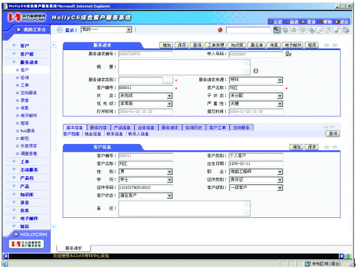 HollyC&C是HollyC6呼叫中心解決方案中蘊涵CRM基礎(chǔ)理念的業(yè)務(wù)應(yīng)用軟件產(chǎn)品。HollyC&C提供全面的呼叫中心系統(tǒng)功能,完成“以客戶中心”的服務(wù)請求-> 業(yè)務(wù)處理(咨詢、投訴、基本業(yè)務(wù)受理)-> 客戶基本資料管理 -> 主動服務(wù)(回訪、滿意度調(diào)查、電話營銷),全部的CRM閉環(huán)處理流程,全程的服務(wù)痕跡得到保留,并提供完善的統(tǒng)計報表進行數(shù)據(jù)分析, 。