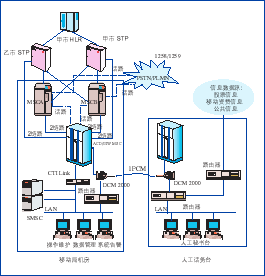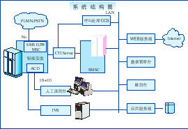| ACD和G/IW MSC采用華為公司的C&C08_Q智能交換機做為交換與七號信令的接入設備; 短消息調(diào)度中心SMSC,處理短消息的提交、存儲、下發(fā)、定時重發(fā)等; 呼叫處理服務器CCS,是人工/自動秘書臺的話務呼叫控制部件; | ![]() |