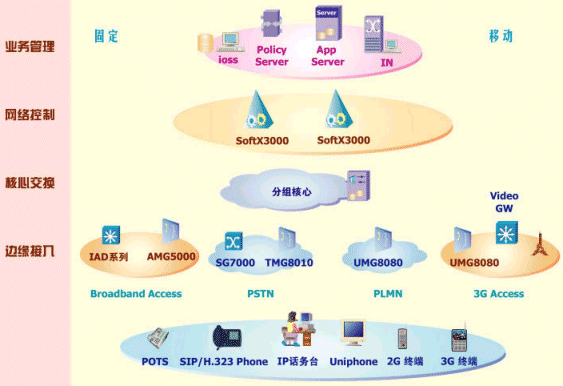 核心承載網(wǎng)采用高速包交換網(wǎng)絡,可實現(xiàn)電信網(wǎng)、計算機網(wǎng)和有線電視網(wǎng)三網(wǎng)融合,同時支持語音、數(shù)據(jù)、視頻等業(yè)務。