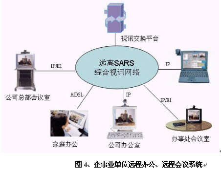 非典型肺炎不但對(duì)國(guó)家的經(jīng)濟(jì)造成了重大的損失,而且使得全社會(huì)對(duì)"非典"噤若寒蟬,大家對(duì)出差甚至外出都異常緊張。華為公司提供為個(gè)人家庭辦公、探親訪友的遠(yuǎn)程多媒體通信解決方案,大家在家里即可通過(guò)網(wǎng)絡(luò)和親朋好友"面對(duì)面"交流、在家中辦公。減少外出、遠(yuǎn)離人員眾多地區(qū),有效預(yù)防非典。對(duì)于有條件的用戶(hù)群可以推薦在現(xiàn)有寬帶線(xiàn)路或新增寬帶線(xiàn)路上購(gòu)買(mǎi)軟件,即可實(shí)現(xiàn)親朋好友間的個(gè)人視頻通信;對(duì)于暫不具備寬帶條件的群體,如學(xué)生等,可以考慮在重點(diǎn)營(yíng)業(yè)廳設(shè)立專(zhuān)門(mén)會(huì)議室或者視訊公話(huà)亭等,提供預(yù)約視頻服務(wù),滿(mǎn)足其溝通的需求。