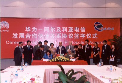 近日,阿爾及利亞電信董事長(zhǎng)兼總裁謝第赫(CHETTIH)先生與中國(guó)華為董事長(zhǎng)孫亞芳女士分別代表雙方公司,簽署了建立全面合作戰(zhàn)略伙伴關(guān)系的協(xié)議。雙方表示,將在CDMA、GSM、交換接入、傳輸和數(shù)據(jù)等各領(lǐng)域開(kāi)展更全面深入的合作,同時(shí)強(qiáng)調(diào)了在技術(shù)交流、培訓(xùn)及業(yè)務(wù)方面的交流與合作。