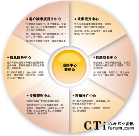 對于銀行業(yè)來說,聯(lián)絡中心已經成為為客戶提供優(yōu)質、快捷的金融理財服務的第二窗口。隨著電子化建設的不斷深入,寬帶、Internet和3G時代帶來的IP融合,聯(lián)絡中心為金融服務帶來了更廣泛的創(chuàng)新,未來的銀行聯(lián)絡中心將為客戶提供的金融服務趨于無所不能。銀行聯(lián)絡中心已經成為自助交易中心、投資理財中心、營銷推廣中心和信息服務中心,借助聯(lián)絡中心,銀行與客戶可以隨時隨地建立緊密的多媒體互動,提升客戶滿意度和服務效率。