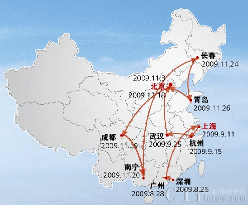 領(lǐng)航3G時代新藍海-2009華為軟件企業(yè)業(yè)務(wù)全球巡展中國區(qū)歷時五個月,穿越深圳、廣州、上海、杭州、武漢、成都、南寧、長春、青島、北京十大城市,足跡走遍大江南北,行業(yè)專家、客戶、代理商及產(chǎn)業(yè)鏈伙伴代表等共計數(shù)千人出席了巡展。在最后一場北京站上,同期舉行了企業(yè)業(yè)務(wù)新產(chǎn)品發(fā)布會,又為新的征程拉開了序幕。