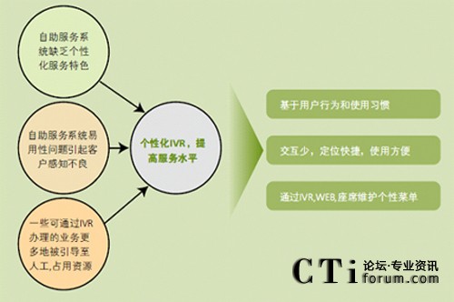 最終用戶可以提取常用業(yè)務(wù)定制自己的IVR菜單,減少語音提示和操作步驟,獲取服務(wù)更為準(zhǔn)確快捷,提升了業(yè)務(wù)受理效率,降低了對系統(tǒng)的占用時(shí)間。自動(dòng)業(yè)務(wù)流程隨著最終用戶對受理業(yè)務(wù)需求的變化,運(yùn)行效率也會(huì)隨之變化,系統(tǒng)將對自動(dòng)業(yè)務(wù)流程的所有節(jié)點(diǎn)進(jìn)行跟蹤分析,根據(jù)效率最大化原則對業(yè)務(wù)節(jié)點(diǎn)進(jìn)行排序和調(diào)整。這些細(xì)節(jié)的改進(jìn),可以最大限度地降低每次交互占用的時(shí)間,提升了客戶滿意度,降低了交互成本。