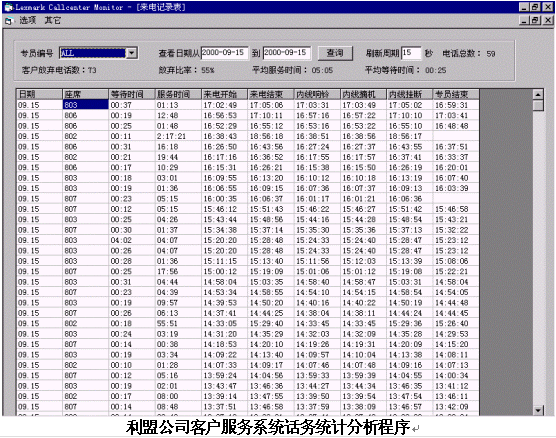 隨著利盟公司客戶服務(wù)系統(tǒng)的開通,使傳統(tǒng)的電話服務(wù)提高到了一個(gè)新的階段;一方面借助客戶服務(wù)系統(tǒng)提供的統(tǒng)計(jì)分析功能,使客戶服務(wù)中心的績(jī)效考核更加準(zhǔn)確、高效和科學(xué);另一方面通過應(yīng)用先進(jìn)的信息技術(shù)和產(chǎn)品,可以極大地提高客戶服務(wù)的質(zhì)量、效率和滿意度,從而對(duì)提升公司形象,促進(jìn)產(chǎn)品銷售發(fā)揮積極的作用。