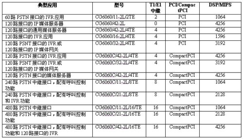 Call ControlTM(NCC)。CG 6060 PCI板卡和CG 6060C CompactPCI板卡是研制經(jīng)濟(jì)型應(yīng)用系統(tǒng)的理想選擇,可研制的應(yīng)用系統(tǒng)類型包括:媒體服務(wù)器、增強(qiáng)服務(wù)平臺、IVR、會議應(yīng)用、消息處理、IP集中交換解決方案等。