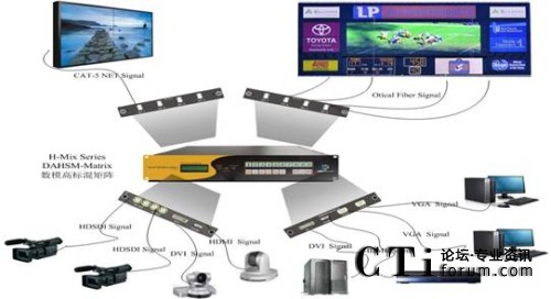 Kensence H-Mix系列產(chǎn)品專門為解決在視頻工程中遇到的諸多問(wèn)題而設(shè)計(jì),將數(shù)字視頻信號(hào)、模擬視頻信號(hào)、高清視頻信號(hào)和標(biāo)清視頻信號(hào)混為一體處理成高清720p@60Hz或1080p@60Hz信號(hào)的HDMI的高清數(shù)字信號(hào)通過(guò)網(wǎng)絡(luò)傳輸?shù)囊豢疃嗝襟w混合矩陣。Kensence H-Mix采用Silicon Image HDMI v1.3芯片,支持HDMI\DVI\3GSDI\HDSDI\SDI\VGA\YPbPr\CVBS信號(hào)的輸入和HDMI\DVI\CAT-5\光纖信號(hào)的輸出,可將VESA\CEA\HDTV各種不同分辨率的信號(hào)轉(zhuǎn)換為HDTV的高清視頻分辨率,并且可以通過(guò)普通五類雙絞線或多模光線進(jìn)行高清視頻的傳輸。Kensence H-Mix可以通過(guò)網(wǎng)絡(luò)、RS232、IR、軟件、前面板對(duì)系統(tǒng)進(jìn)行控制管理,采用插卡式設(shè)計(jì)可以任意進(jìn)行系統(tǒng)組合,方便靈活。模塊化雙電源冗余熱備份功能可以實(shí)現(xiàn)7日24小時(shí)連續(xù)開(kāi)機(jī),保證系統(tǒng)安全可靠工作。