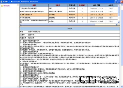 知識(shí)庫(kù)可以由企業(yè)相關(guān)人員自行設(shè)定、更新最新的產(chǎn)品知識(shí)、市場(chǎng)信息和競(jìng)爭(zhēng)產(chǎn)品比較等信息。強(qiáng)大的搜索功能也使得查詢更加便利。如當(dāng)客戶提出某問(wèn)題使得服務(wù)人員無(wú)法立即回答時(shí),系統(tǒng)還提供相應(yīng)的填寫欄目以便及時(shí)發(fā)送至主管,請(qǐng)求幫助。而當(dāng)主管對(duì)此問(wèn)題進(jìn)行回復(fù)后,可以選擇將此問(wèn)題自動(dòng)放入知識(shí)庫(kù),以便同其他人員分享。系統(tǒng)可以根據(jù)問(wèn)題的點(diǎn)擊率將最感興趣的問(wèn)題排列在最前,并可以匯總出一定時(shí)間內(nèi)最感興趣的問(wèn)題及產(chǎn)品,作為企業(yè)對(duì)服務(wù)人員今后培訓(xùn)的重點(diǎn)。同時(shí),系統(tǒng)將自動(dòng)記錄每一位客戶的咨詢記錄,及時(shí)更新并在客戶再次致電時(shí),顯示在客戶資料當(dāng)中。