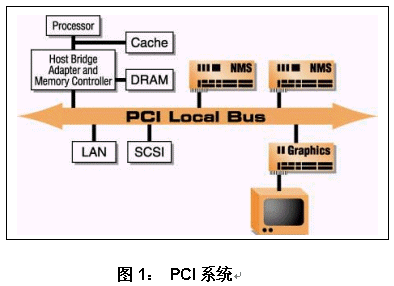 PCI(Peripheral Component Interconnect)本地總線是采用多路地址和數(shù)據(jù)線的高性能32位/64位總線。在采用NMS板卡的系統(tǒng)中,PCI總線用來(lái)在NMS板卡和主機(jī)處理器之間傳遞數(shù)據(jù)和控制信息。其它外圍附加板卡通常與NMS板卡共享總線。(參見(jiàn)圖1)