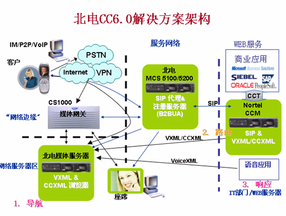 由于北電應用中心CC6.0完全基于SIP協(xié)議,支持CCXML與VXML的應用,因此,使用北電應用中心CC6.0可為客戶提供新型應用,如彩鈴、自然語言識別、基于WEB信息的自助語音服務等。