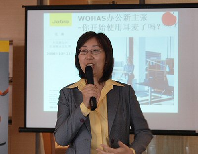 2008年10月21日,上海,來自丹麥的全球第一耳麥制造商GN大北歐在位于中山南路的老碼頭廣場(chǎng)內(nèi)為旗下新推出的兩款辦公耳麥產(chǎn)品—Jabra