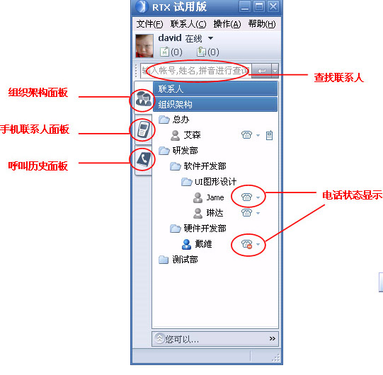 OmniRTX插件實現(xiàn)了在RTX界面上,直接對企業(yè)內(nèi)部電話終端進行基本呼叫業(yè)務和電話增值業(yè)務的控制、設置和管理,更加方便的提供了企業(yè)內(nèi)部員工之間的交流,進一步改善企業(yè)與客戶之間的溝通渠道,所有的溝通和交流不再受時間、空間的限制,更高質(zhì)量的解決了企業(yè)在語音、文字、圖片以及視頻等多方面的效率問題!