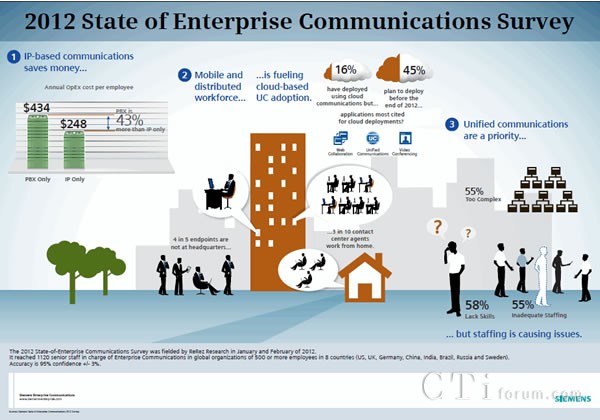 “此項研究的發(fā)現(xiàn)證實了我們從客戶那里得來的反饋:基于IP的統(tǒng)一通信不僅提高了終端用戶的生產效率,還節(jié)約了公司成本,”西門子企業(yè)通信北美區(qū)總裁兼全球市場總監(jiān)Chris Hummel說,“企業(yè)通信正處于從PBX到IP以及從客戶機房到云部署的過渡時期。西門子企業(yè)通信致力于為我們的客戶提供靈活開放的企業(yè)通信解決方案,以適應其業(yè)務需要。這有助于降低IT技術的復雜性,更好地支持企業(yè)員工的移動性需求,并幫助企業(yè)完成這種轉變。”