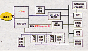 ● 錄音監(jiān)控系統(tǒng):使用Meridian 2216 ACD數(shù)字話(huà)機(jī)上的錄音端口,接入模擬語(yǔ)音卡或直接接入PC聲霸卡,進(jìn)行錄音監(jiān)控。