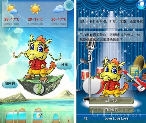 聰明、善解人意的小唐龍基于開放的Android操作系統(tǒng),在捷通華聲全球首個全方位智能人機交互(HCI)感知云-靈云平臺的支持下,會學習,善思考,能說會聽,能寫會識。此次正式發(fā)布的小唐龍界面更加清新亮麗,令人耳目一新;獨一無二的語音與手寫全方位人機交互,讓用戶在任何情況下都可以無障礙的使用小唐龍;重新構(gòu)建設(shè)計的音樂播放的界面,增加歌詞顯示功能,讓用戶隨心所欲的添加、刪除、選擇、演唱歌曲;新聞播報清晰自然,流暢動聽,新聞內(nèi)容更加豐富,讓天下大事隨時都掌握在用戶手中;地圖查詢實現(xiàn)全國范圍方便快捷的導航、公交查詢、餐飲服務;全國地區(qū)天氣預報等功能的完善,給用戶的生活帶來的極大的便利。全新小唐龍讓手機助手之名更加名副其實!