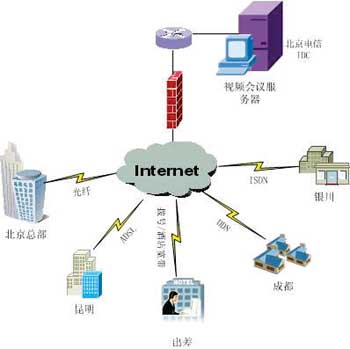 隨著業(yè)務(wù)和市場(chǎng)覆蓋的不斷提高,這些傳統(tǒng)企業(yè)的各種分支機(jī)構(gòu)也遍及從省、市一直到縣、鄉(xiāng)的各個(gè)區(qū)域,這種地理位置上的多樣性也造成了網(wǎng)絡(luò)環(huán)境的復(fù)雜,各種辦事處、分廠、子公司等分支機(jī)構(gòu)的接入方式往往會(huì)包括撥號(hào)、ISDN、ADSL、DDN等多種寬窄帶形式。此外,隨著企業(yè)信息化建設(shè)中對(duì)網(wǎng)絡(luò)安全問題的日益重視,視頻會(huì)議系統(tǒng)的建設(shè)不能對(duì)企業(yè)防火墻造成任何安全漏洞也成為企業(yè)信息化主管的一種普遍共識(shí)。