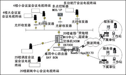 云南電力集團有限公司會議電視系統(tǒng)一期工程視頻方案基于H.323標準,以路由器連接專線(或DDN、幀中繼)為傳輸媒介,全省會議電視用戶以星形網(wǎng)絡結構通過路由器和省調MCS/IP聯(lián)接,全網(wǎng)運行速率64kb/s--1920kb/s,分級可調。中心會場設在云南省電力局大樓內(nèi)。在省電力局采用H.323 多點會議服務器MCS/IP,可連接32個用戶,覆蓋了全省,包括昆明電力大樓、調度中心、昆明發(fā)電廠、曲靖電廠、漫灣電廠、滇西電業(yè)局、滇中電業(yè)局、滇東電業(yè)局、陽宗海電業(yè)局、昆明供電局、昆明供電局、宣威電廠,除Hub外,其他會場均通過Cisco 3810路由器接入,在路由器中運行RSVP協(xié)議。