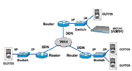 在這幾個(gè)不同的辦公地點(diǎn)的會(huì)議室分別配置一臺視頻會(huì)議終端設(shè)備,在主會(huì)議室中再配置一臺多點(diǎn)控制單元MCU,即可實(shí)現(xiàn)商業(yè)用戶在同城的幾個(gè)辦公室之間進(jìn)行視頻通信。該方案的組網(wǎng)非常簡單,不需要企業(yè)租用電信的線路,也不需要多購買其他網(wǎng)絡(luò)設(shè)備,只需為每臺設(shè)備分配私有的IP地址,就能實(shí)現(xiàn)視頻通信。