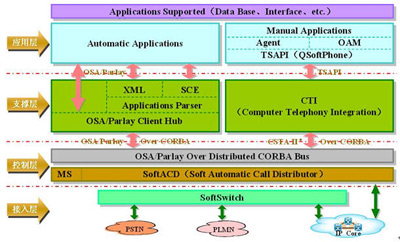 NGCC產(chǎn)品遵循OSA/Parlay體系結(jié)構(gòu)如圖所示。