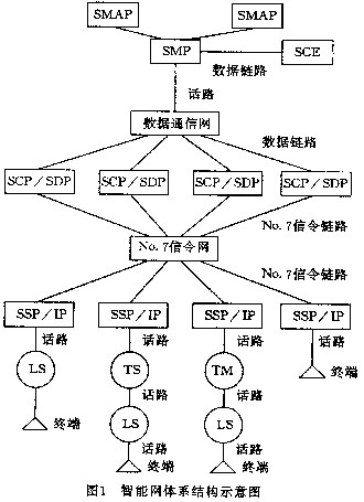 --智能網(wǎng)是通過業(yè)務交換點(SSP)、業(yè)務控制點(SCP)、數(shù)據(jù)庫(SDP)、智能外設(IP)以及業(yè)務管理點(SMP)、業(yè)務生成環(huán)境(SCE)等來生成和實現(xiàn)新業(yè)務的。它可以為所有的通信網(wǎng)絡服務,無論是PSTN、PSPDN、PLMN、N-ISDN。圖1所示是PSTN、PLMN、N-ISDN還是B-ISDN。圖1所示為我國目前智能網(wǎng)的結(jié)構(gòu),其中的SMAP是業(yè)務管理接入點。LS是市話交換,TS是長途交換級,TM為匯接局。