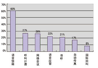 現(xiàn)在常用的辦公交流方式還是以傳統(tǒng)的電話、互聯(lián)網、電子郵件為主,而Voice Mail的方式卻比較少?梢钥闯觯赩oice Mail上還有很大的發(fā)展空間。