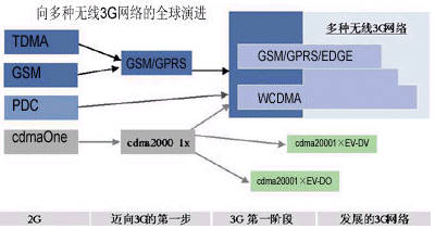 移動(dòng)多媒體服務(wù)需要網(wǎng)絡(luò)具有更高的速度和更大的容量。蘇敏芬詳細(xì)描述了網(wǎng)絡(luò)由2G向3G演進(jìn)的過程(如圖1)。據(jù)介紹,2G的技術(shù)基于多種標(biāo)準(zhǔn),包括TDMA、GSM、PDC和cdmaOne。其中,TDMA是美國采用最廣泛的2G技術(shù),但現(xiàn)在,美國的運(yùn)營(yíng)商已經(jīng)越來越多地開始采用GSMc以及GPRS、EDGE等基于GSM的技術(shù);GSM存在于全球70%的運(yùn)營(yíng)商網(wǎng)絡(luò),這種全球化技術(shù)不僅能夠給最終用戶提供服務(wù)、漫游以及通信質(zhì)量方面的很多好處,它還可以節(jié)省運(yùn)營(yíng)商的投資,在從GSM向WCDMA演進(jìn)的過程中,也會(huì)為運(yùn)營(yíng)商帶來諸多裨益。PDC是在日本被廣泛采用的一種技術(shù)標(biāo)準(zhǔn),但現(xiàn)在,WCDMA技術(shù)也正在逐漸被日本運(yùn)營(yíng)商采用。cdmaOne(即IS-95)在韓國得到了比較多的應(yīng)用,韓國的運(yùn)營(yíng)商面臨兩條發(fā)展道路,即從cdmaOne向WCDMA發(fā)展或向CDMA2000發(fā)展。中國主要采用GSM技術(shù),但也有小部分網(wǎng)絡(luò)采用了cdmaOne技術(shù)。