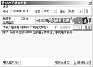 目前IM與各種移動終端設(shè)備的結(jié)合也越來越多。使用QQ向手機發(fā)送短信需要手機開通移動QQ服務(wù),單擊對方頭像圖標,在打開的快捷菜單中選擇“手機短訊”命令,在打開的對話框中輸入信息,然后點擊發(fā)送即可完成,這時對方的手機就可以收到一個消息。給BP機發(fā)短訊也是一樣,不過對方的BP機服務(wù)臺必須是QQ所支持的情況下才行。當(dāng)對方的手機收到你發(fā)來的短信后還可以回復(fù),這時候您的QQ會彈出“查看手機短訊”的窗口來,非常方便。