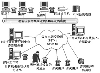 此方案使用后,以市為中心,可把周邊的各個縣、各個區(qū)聯(lián)成一個統(tǒng)一的148法律服務整體,各個縣、各個區(qū)的咨詢用戶只需要知道一個統(tǒng)一的148法律服務電話號碼,就可與最近的148法律服務臺接通進行法律咨詢。