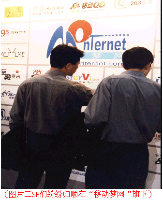 2001年12月20日至21日,中國移動在北京召開“移動夢網(wǎng)”行業(yè)應(yīng)用客戶大會。在這個被中國移動稱之為“全面啟動行業(yè)應(yīng)用客戶市場”的大會上,中國移動意味深長地宣稱:“‘移動夢網(wǎng)’行業(yè)應(yīng)用,將立足移動互聯(lián),以‘共贏’為目標(biāo),通過誠信合作,向行業(yè)客戶提供‘一攬子’信息化解決方案。”