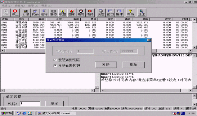 代碼可以只發(fā)A表或者B表,也可以單發(fā)一條或提示輸入一段代碼范圍來發(fā)送,否則,將發(fā)送所有的代碼。